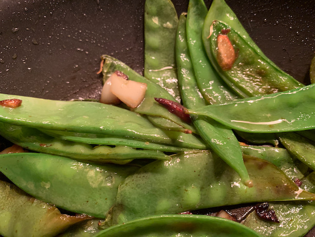 I served them with snow peas (mange tout) sauteed in garlic and butter.