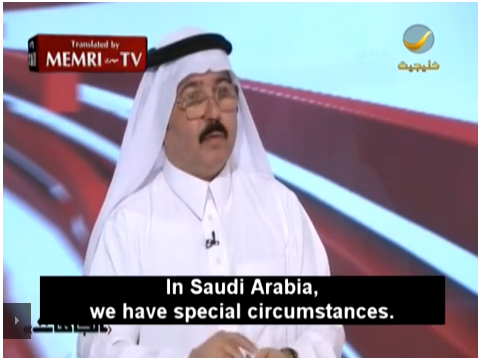Since the rape argument didn’t seem to be convincing anyone, al-Saadoon tried another approach, claiming that women are treated “like queens” in Saudi Arabia because they are driven around by the men of the family and male chauffeurs. That led the host to ask if he wasn’t afraid that women might be raped by their chauffeurs.