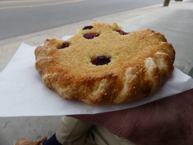 As we are walking through the market, he remarks that this is just like Seattle. It’s a cloudy, cool, maybe a little gloomy morning with heavy overhanging clouds, and we are all involved with food – the quick trip to the commissary for basics, then the unfruitful trip to Craft Bakery, and now strolling through the market, which we often do summer Saturdays in Edmonds, Washington, or down in the Pike Place Market. You never know what you will find, but we alway find something delicious. Hand made apple sausages? Beautiful bouquets of flowers running $10 – $30? Fresh Dungeness crab, steamed in the shell?