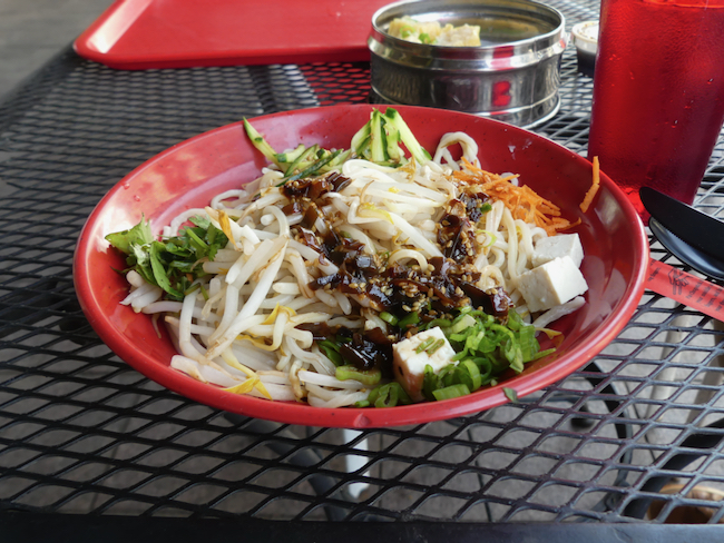 And AdventureMan had the rice noodles, spicy tuna, Napa cabbage, peanuts, green onions and cilantro. We agreed, it was a delicious lunch.