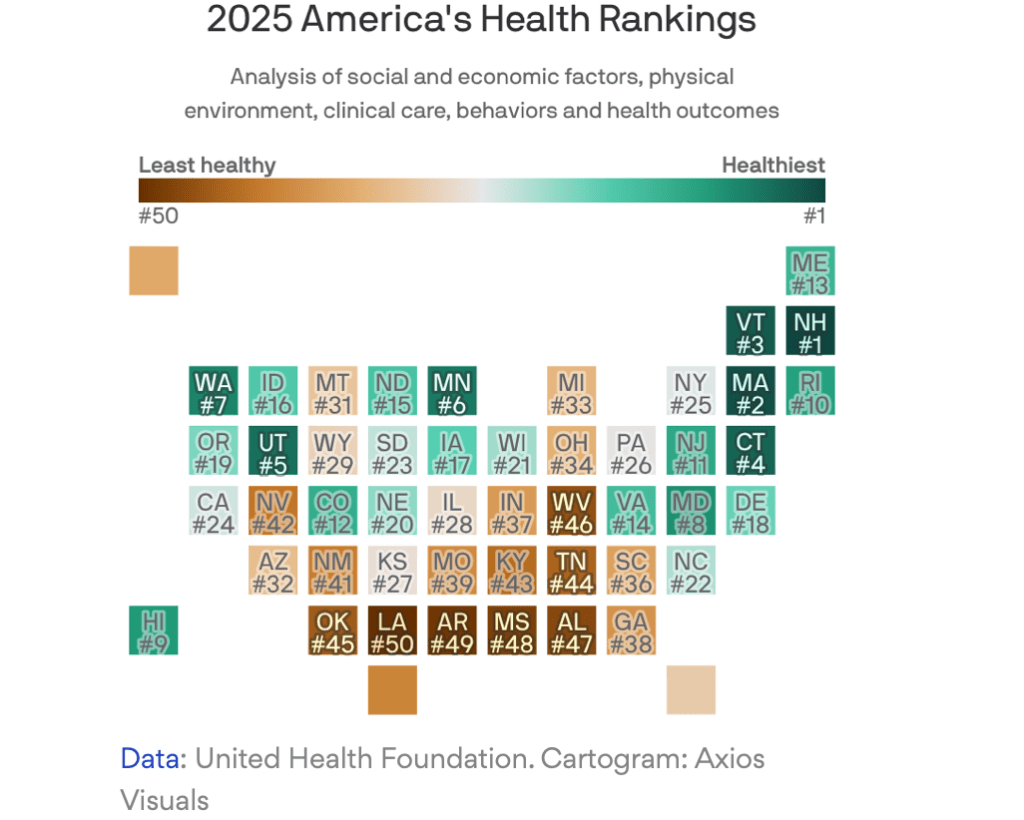 From Axios: America’s Healthiest and Least Healthy States