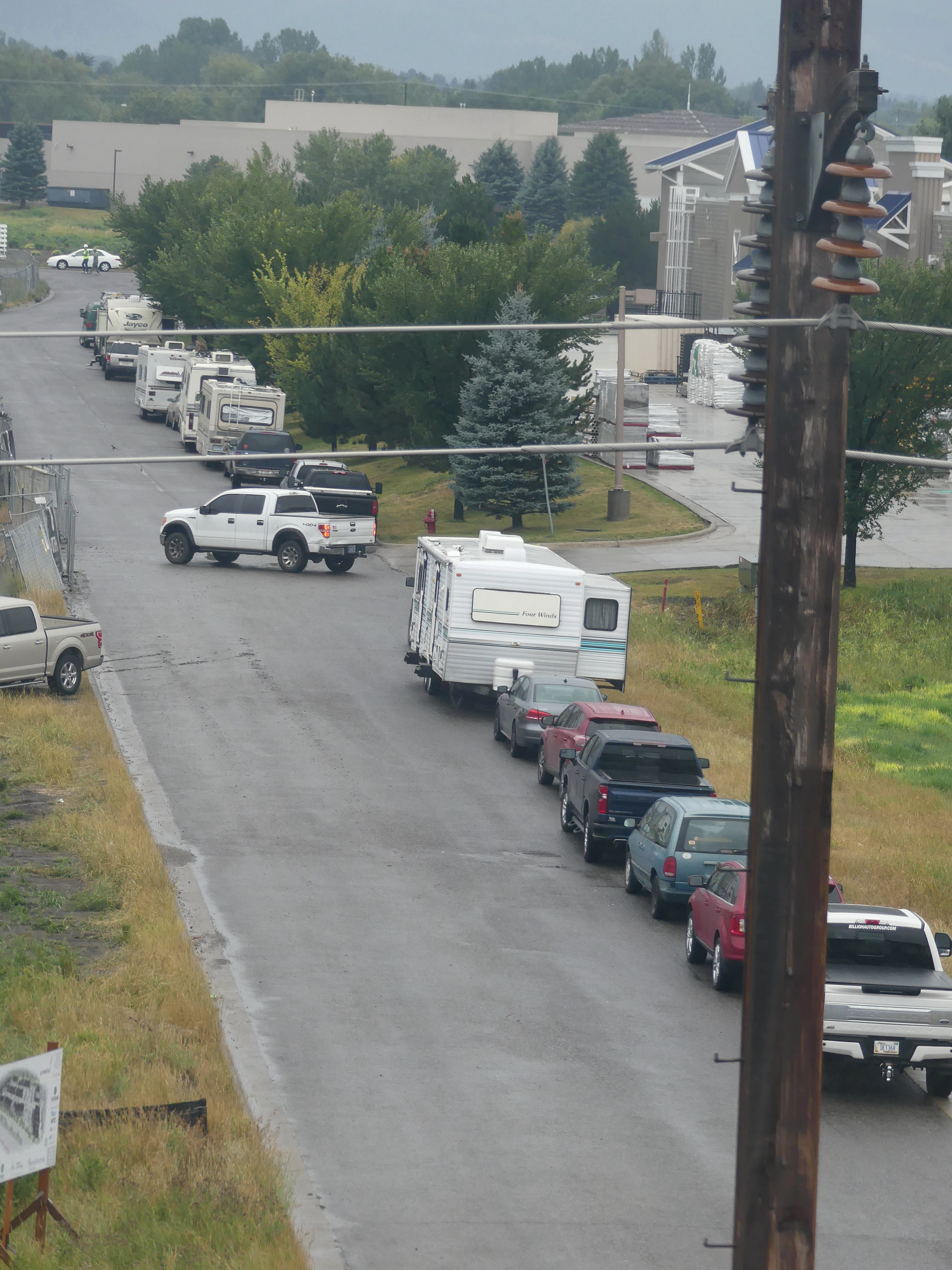 There is a lot of construction going on in Bozeman, and we are told by many we talk with that the problem is trying to find an affordable place to live in Bozeman. Outside our window, we can see new housing going up, and we can also see the solution the construction workers have found to deal with the housing affordability problem.