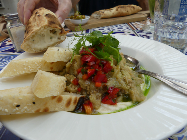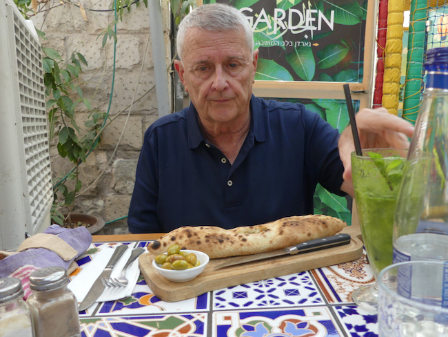 We find a restaurant, the Gardens, for lunch and have a delicious lunch with freshly baked bread and cheese, lemon mint iced drinks, and a baked eggplant dish with tahini, finishing with Arabic coffee. We were definitely in our happy place.