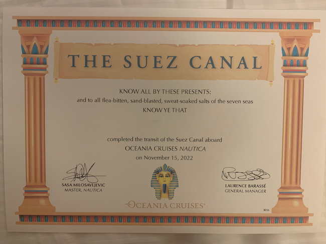 I am starting this entry at the end. Those of you who have been reading Here, There and Everywhere all these years know that I am an unabashed Geography nerd. I love maps. I love navigating, and I am pretty good at it. The opportunity to go through the Suez Canal was irresistible.