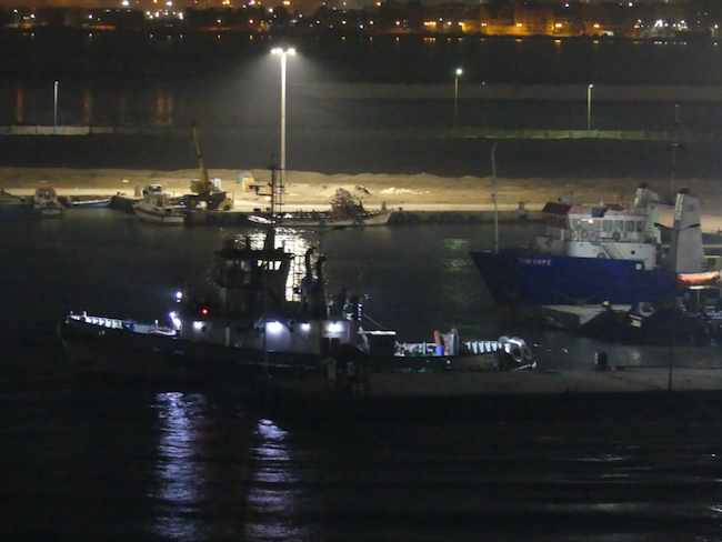 Too early for sunrise, not yet in Cadiz, and not allowed out on the deck – maybe high winds?