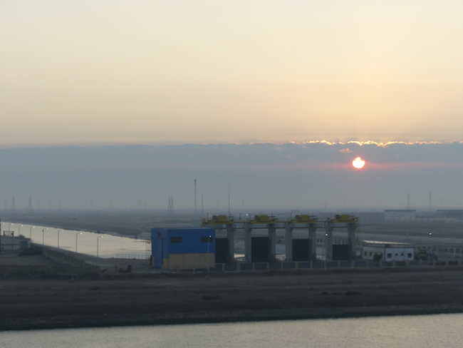 The sun sets as we leave the Suez Canal and chug down the Red Sea towards Safaga, where we will dock to go to Luxor, Karnak, and the Valley of the Kings.