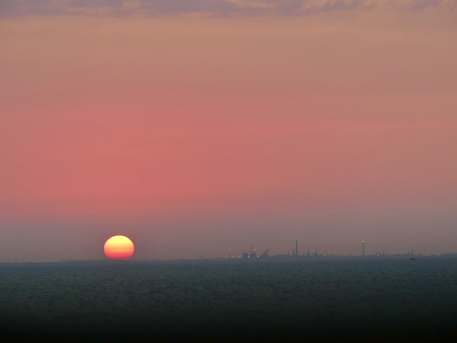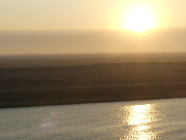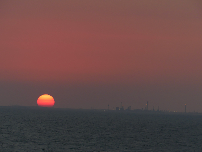 It was a beautiful evening, but oh, the industrial smog that hung over Port Said created a firey sunset.