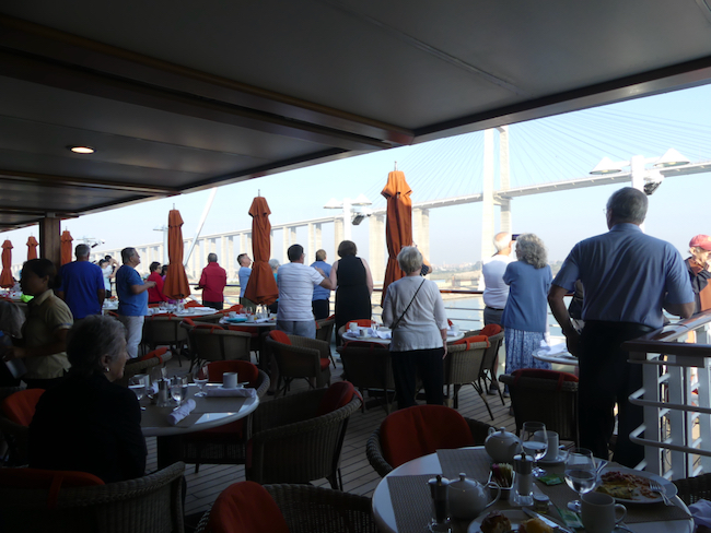 Leisurely breakfast on the outside deck as we plan our packing strategy. AdventureMan’s strategy is to go to the fitness center while I pack and to stay out of my way, LOL. Smart man. He has less to pack and he doesn’t overthink the way I do.