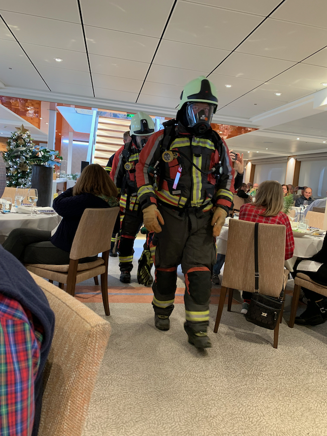 On our last day aboard the Beyla, the fire warning sounded. Our cabin attendant said it must be a mistake, but shortly after that, the Captain made an announcement asking all passengers to please move to the lounge, which we did. We didn’t know what was happening, but learned there was a small fire in the engine room, and they wanted to be sure the passengers were kept safe.