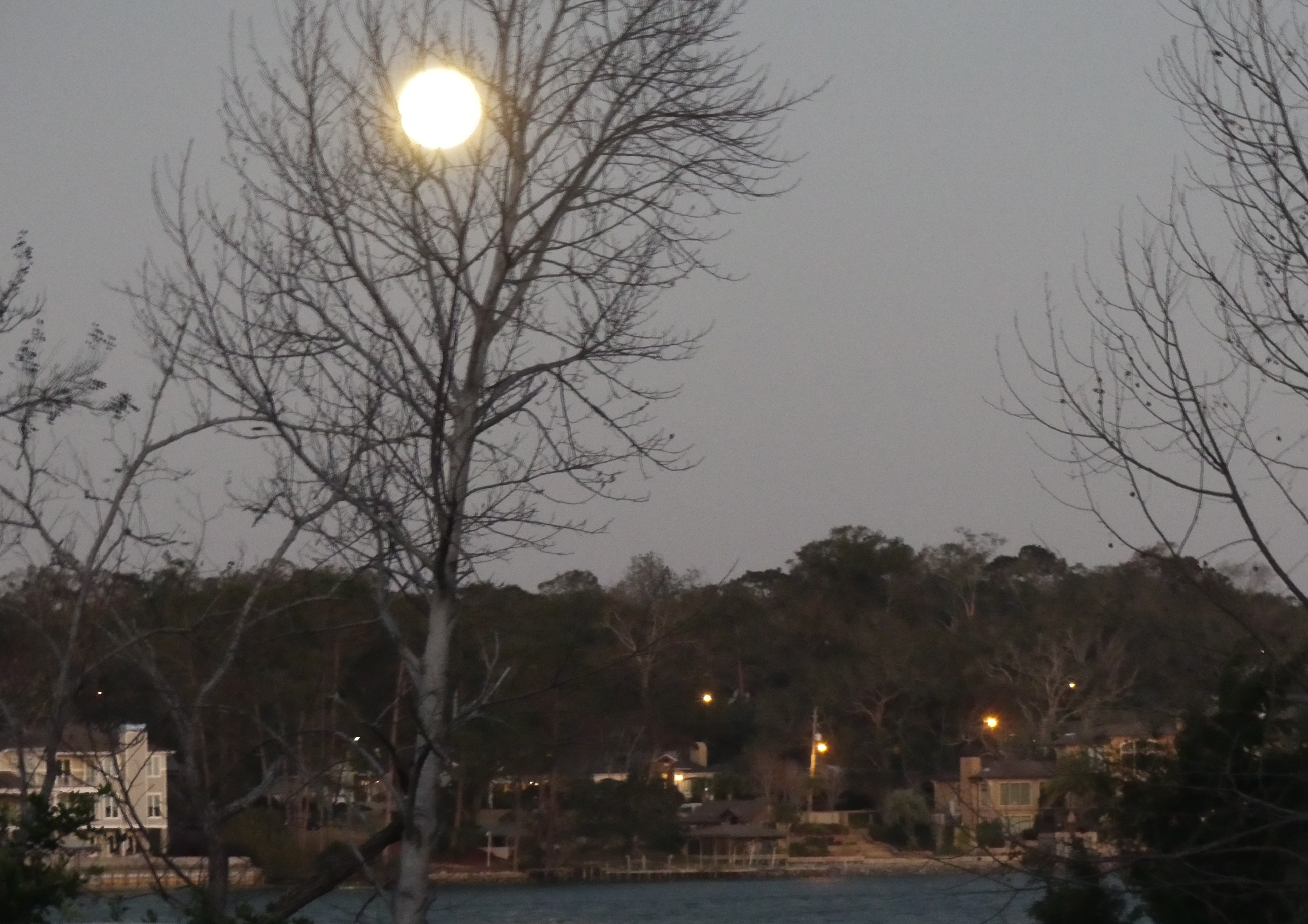 Back in Pensacola; we love our sunsets and the Wolf Moon setting over the Bayou Texar: