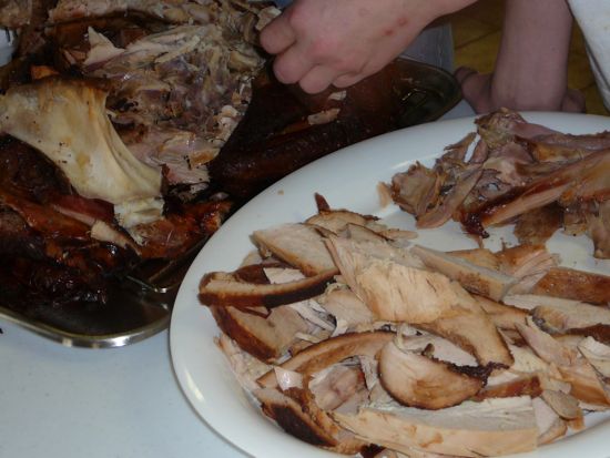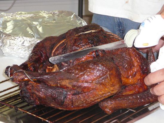 Usually, the men carve the turkeys – this year, a smoked turkey and a deep fried turkey: