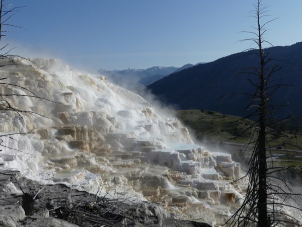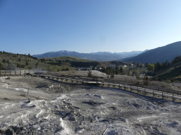 I want you to see how close we are to the Mammoth Hot Springs Hotel; you can see it at the top of the photo. I remember counting these steps, a lot of steps, going up and up and up, but now I can’t remember how many there were. It was daunting looking up, but exhilarating looking down.