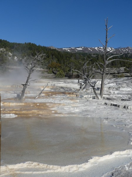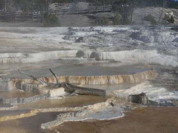 On the upper terrace we came across this: a boardwalk viewpoint is now off limits; it is sinking. We contemplated how difficult it must be to install these boardwalks to allow visitors to safely walk these terraces, and how difficult it must be to repair, maybe impossible. The ground is constantly shifting and reforming. How to balance the need for the tourist dollar to preserve and protect the park with the costs of keeping the visitors safe and amused.