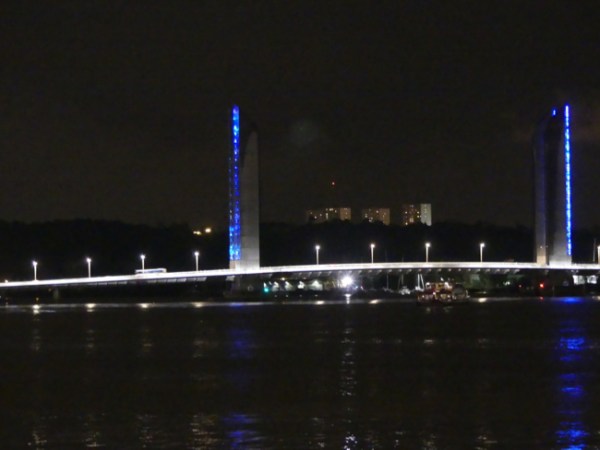 These are the towers on a bridge outside our window. You might think that sky looks a little blue, but it is just shades of gray.