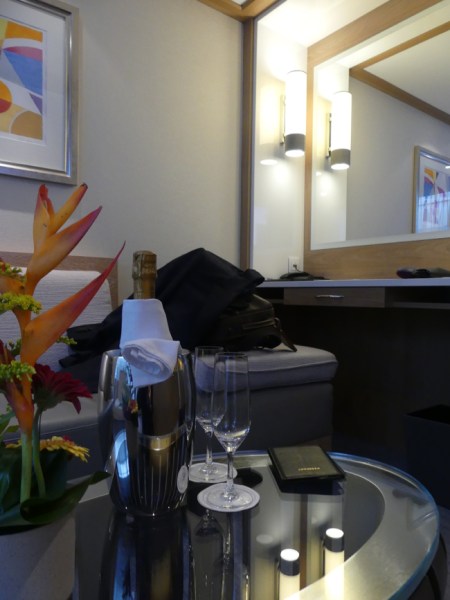 There was champagne waiting for us, two glasses, and a flower. It’s a lovely thought.