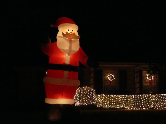 A lot of people are using balloons, with varying results. Santa on a motorcycle, Santa on rockets, all kinds of balloons, problematic because sometimes balloons loose air.