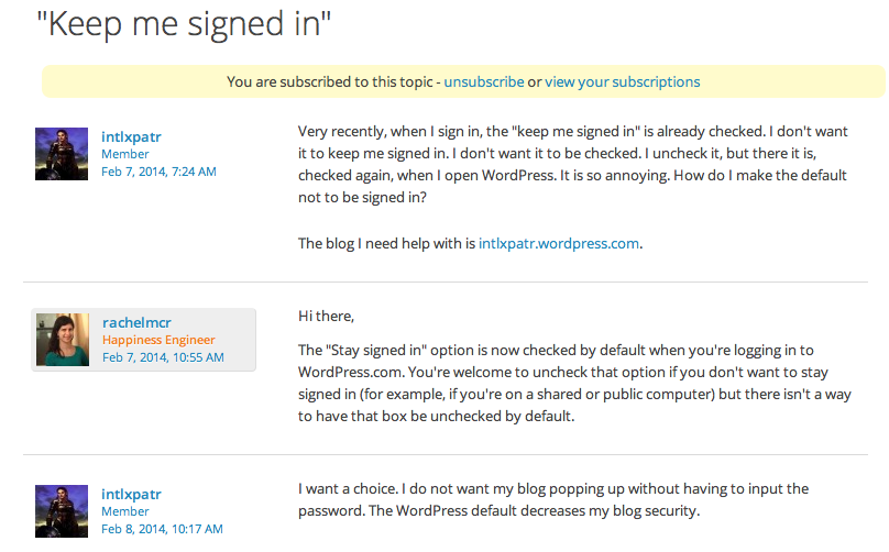 The other day I noticed something really, really annoying. My blog opened without my having put in the password. I noticed the little “keep me signed in” bloc was checked, so I unchecked it. Every time I sign in, however, that block is checked – by default – and unless I think to uncheck it, I stay signed in.