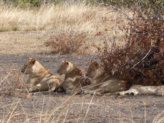 Julius knows a way around, so we go around to the other side, where we can see four lion – and then six lions! They are all young males, females and cubs, and are resting.