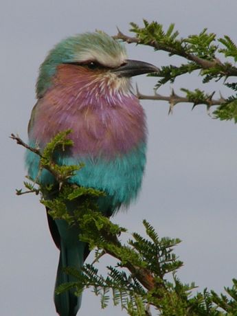Among the thrills in this more northern camp were also the glorious birds. This is one of our favorites, a Lilac Breasted Roller: