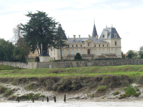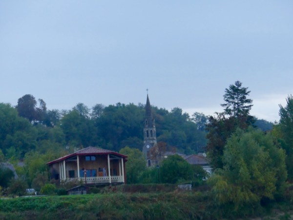Along the route are fishing camps, and these nets when lower down right into the river to catch fish. The Gironde flows into the Atlantic Ocean, and the Atlantic Ocean sends tides up the rivers, a tide called the Mascaret. The Mascaret can cause a huge lift, enough to make going under bridges difficult for ships, and, alternatively, can cause very low water, making it possible for ships to go aground, so the ship captains have to be very aware of the tidal forecasts on these associated rivers.
