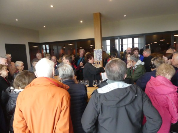 This is the interior of one of the Viking buses. It is roomy and comfortable, and has it’s own toilet  aboard. We aren’t on the buses long, but they take us to the various vineyards and wineries for educating us on wine production and tasting the wares. And selling the wines, of course. We are warned that this is a very good time to buy French wines before the new Trump French wine tariffs go into effect, pushing up the prices and limiting the availabilities of the finest wines.