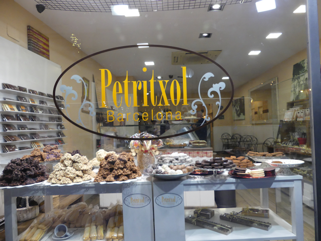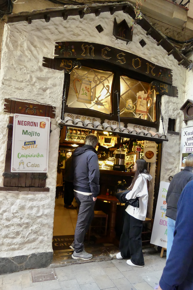 We ate lightly so that we could have hot chocolate at the oldest chocolate shop in Barcelona, very close to the Boqueria. The name is La Granja, and it is a couple streets behind La Rambla and the Boqueria.