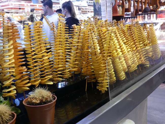 These are another Spanish favorite, Patatas Bravas, kind of deep fried potatoes with tomato sauce or garlic sauce.