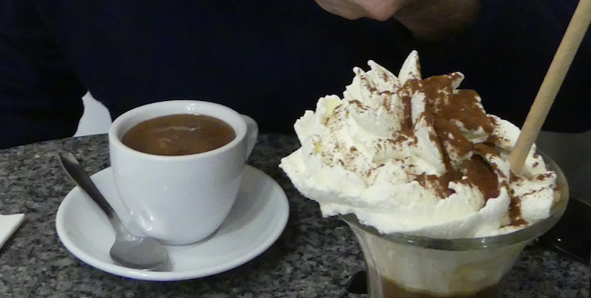 It was delicious and fun. When we got there, they wanted to make sure we knew they were closing for the mid-day break. We assured them we only wanted chocolate, and creme brulee, and they welcomed us. We loved the place, with customers coming in for cut meats and other kinds of delicacies, we don’t really know what because we don’t speak Spanish except for a few words. It didn’t matter. The chocolate was thick and smooth and like eating a little bit of heaven, if heaven to you is chocolate, thick dark chocolate, as it is to me. The creme brulee’ is to be tapped with the spoon to break the crust before you eat.