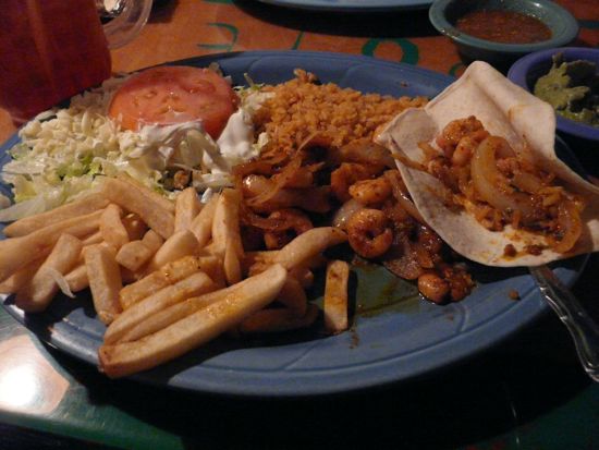I order Camerones (Shrimp) Diablo and AdventureMan orders Carne Asada. Both real good. 🙂