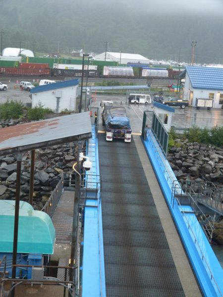 the same as the list I so carefully printed off from the website. If I had known we would be in Whittier until 10:30 we would have debarked, which we are allowed to do if we have tickets and ID to get back on. My little calendar showed a 0800 departure, so we waited, and waited – but the ferries make their own rules, according to weather and tides and what they are porting from one seaside village to another. We watched containers full of goods come on for the more remote locations.