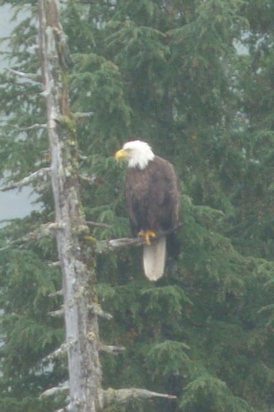 Chenega Bay – We arrive, foggy but no rain, to find an eagle perched in nearby tree, welcoming us.