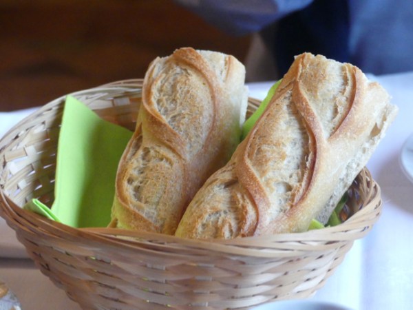 Of all our meals on the ship and in France, this meal was one of my favorites. The atmosphere actually was pretty poor; it was full of tourists, and children, and was noisy. What was good was the service was helpful, friendly and efficient, and the food was excellent. We each had the same meal – a salad, with a slab of foie gras, a slab of pate’, and a thick slice of smoked salmon on really delicious dark grainy bread. I love finely grated carrots, and the dressing was simple and delicious. It was a very satisfying meal.