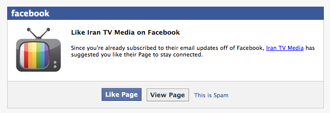 When I get something like this, my immediate reaction is concern: “when did I indicate a ‘like’ for Iran TV Media? When did I sign up for this service?”