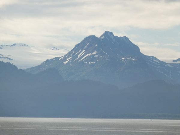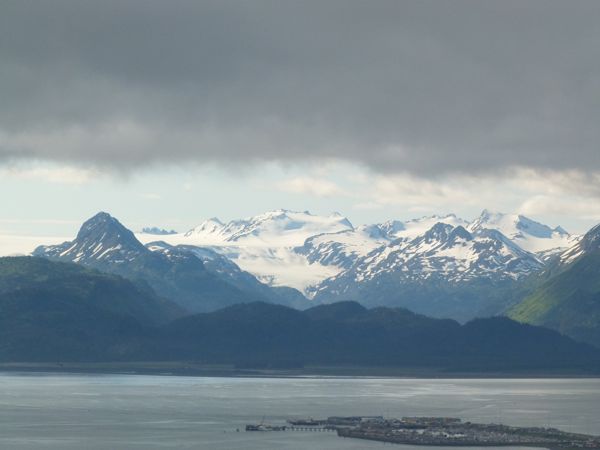 We had stopped at the Safeway in Seward, where they have a nice Deli with sandwiches and cookies, and we had our lunch with us. You just never know where you will be and if a restaurant is still open, or not yet open for the season. Here is where we had our lunch stop – an oversight with a view of volcanos – when you can see more than 50 feet in front of you.