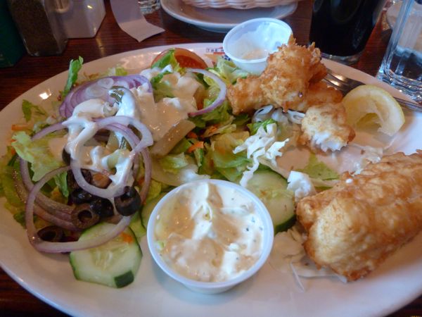 We liked the food and atmosphere so well that we went back a second time during the ceremonial dances and were happy to see a lot of the dancers eating there, too. I had the first mate’s plate, with salmon and halibut and a berry chutney and AdventureMan had grilled halibut. We both left happy. We would go there again in a heartbeat.