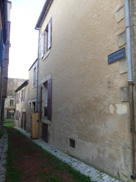 Did I mention the day our marriage survived a two and a half hour drive that ended up taking a whole day? Getting to St. Alvere was like that. I was navigating with Google, and we got on the tiniest, most remote roads. It took a long time to get to there. I never saw a truffle, but it was a gorgeous day, and a beautiful town, and indications that it, too, was on the pilgrimage route to San Diego Compostela.
