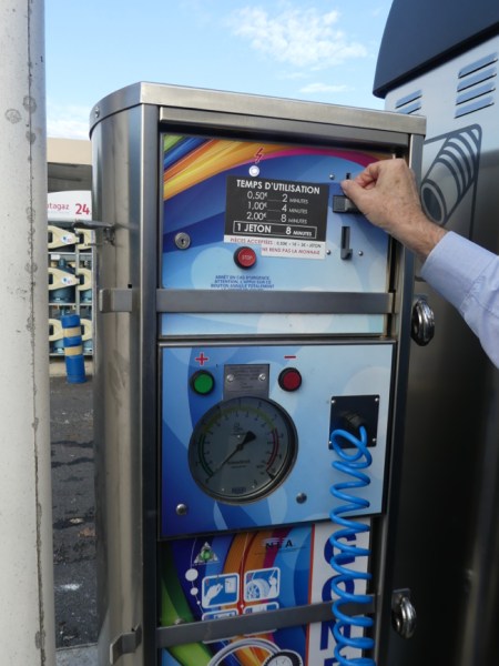 These are the things that try men’s souls. It is not intuitive. Jeton means “token” but does it also mean coin? How does psi translate in French, how will we know how much air to add? We are consulting the car manual, the side of the driver’s door, the machine . . . eventually, we were able to add enough air, without adding too much air.