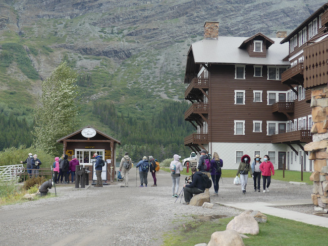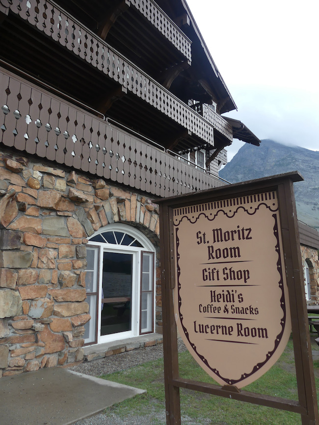 Many Glacier Lodge is beautiful. I have a real weakness for the old, sturdy, long built lodges, but many times the rooms small and the spaces crowded. Many Glacier Lodge had a couple tour groups waiting to catch the excursion boat, and many die-hard hikers, headed for the beautiful hikes available. It turned cold, and an icy rain began to fall heavily. Even though I was raised hiking in rain, I don’t much like it, especially when I end up cold and wet. I have turned into a total wuss.