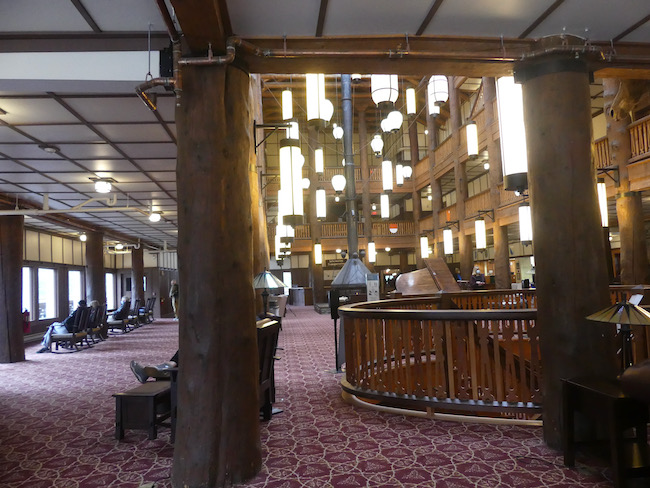We find a really good parking place and head for the lodge; I separate from AdventureMan to find the ladies room, which is down one of two intertwining staircases.
