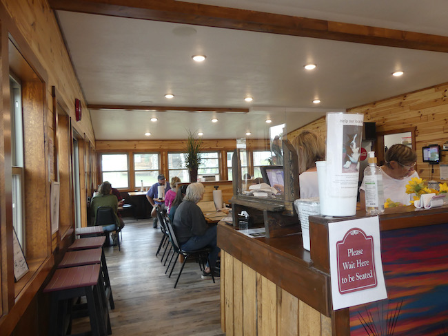 And, again, it was a demographic. The cook staff seemed to be mainly men in their thirties and forties; the waitstaff seemed to be women in their sixties and seventies. The young people are non-existent. We wait, first in line, as couples and groups come in behind us and get on the list. “Why wait?” you may ask. We scoped out the options, from Saint Mary’s to Browning to East Glacier – everything we found was closed this Sunday morning; The Whistle Stop is open. It’s the only open restaurant we found.