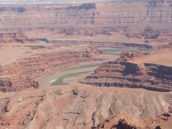 Interstate 70 is a piece-of-cake now, snow and ice free, temperatures rising. Very shortly, we come to the turn-off to Moab, and then, the turn off to Dead Horse Point State Park and Canyonlands. AdventureMan says it is one of the best $15 we have ever spent; suddenly we are in a new world, full of natural glory.