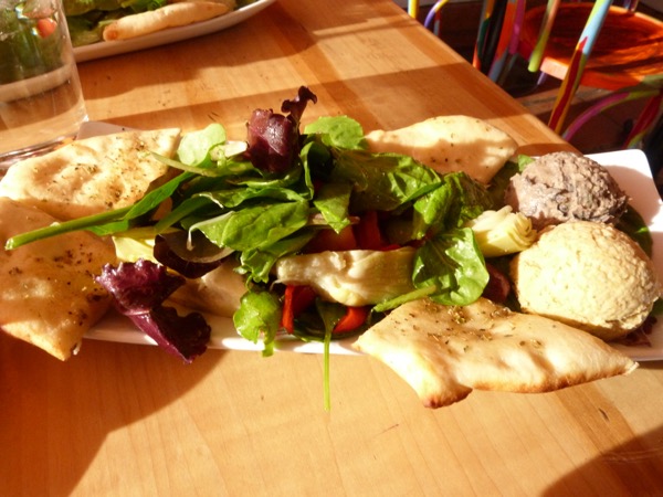 We had heard the Twisted Sista was our kind of place, and when we got there, we believed it. After our hearty lunch at Smoke, we wanted light. We both ordered French Onion Soup and the Mediterranean (or was it Greek?) Salad, and the soup was fabulous (we did scrape off all the cheese, there was really a lot of cheese) and the salad even better. We had dessert; AdventureMan ordered some chocolate bombe, and I had a puckery lemon sorbet, just what I love! So tart, and just a little sweet.