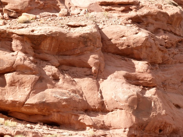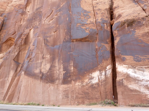 After our long hike, and our fabulous lunch, we took a short nap, then headed out to find ancient petroglyphs and pictographs. (Pictographs are painted on, petroglyphs are incised out.) Potash Road was near the entrance to Arches National park. It looked like an ordinary road, even a farm road. Once again, a road that started out looking and sounding inauspicious turned out to be a lot of fun.