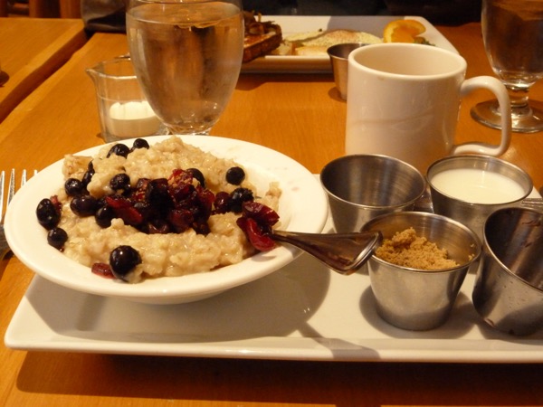 It’s a little chilly for breakfast on the terrace, but the inside restaurant is nice, the wait staff is exceptional, professional, helpful and quick. When I saw blueberries available on another dish, and asked the waiter if I could add them to my oatmeal, it was a done deal. Don’t you just love it?