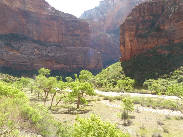 We have to take the shuttle to get deeper into the park, so we go all the way to the end. Our plan is to do the Riverwalk hike, then work our way back to the hotel. At this time of the morning, there are only adults, no children. The children arrive on buses, hundreds of school children brought to the park nearing the end of the school year, to show them the wonder of our country’s natural beauty.