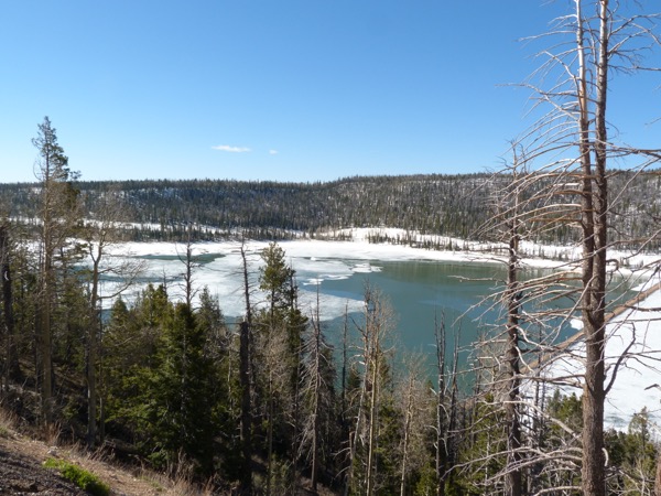 Did I mention it was cold? This lake, at a resort along the small Utah road, is still partially frozen. It is beautiful.