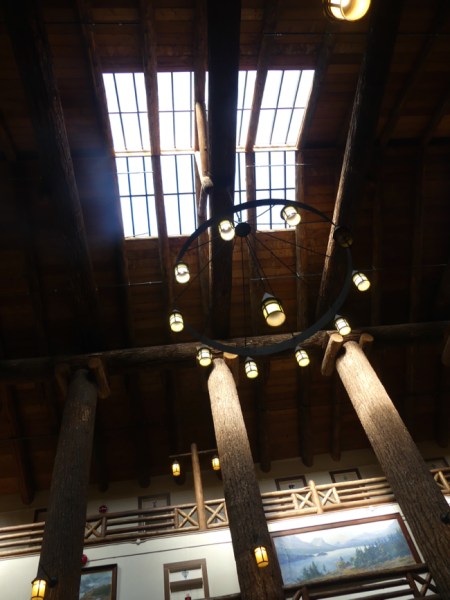 The first thing we see coming into East Glacier Park Village is a gorgeous lodge, the Glacier Park Lodge. When I tried to book it, it said it would not be open when we visited and it wasn’t open, but . . . the people working to get it open were very kind, and a ranger showed us through the beautiful old hotel. It has huge timbers holding up the lobby, and a beautiful skylight in the roof so it all feels bright and airy and open. This place is gorgeous.